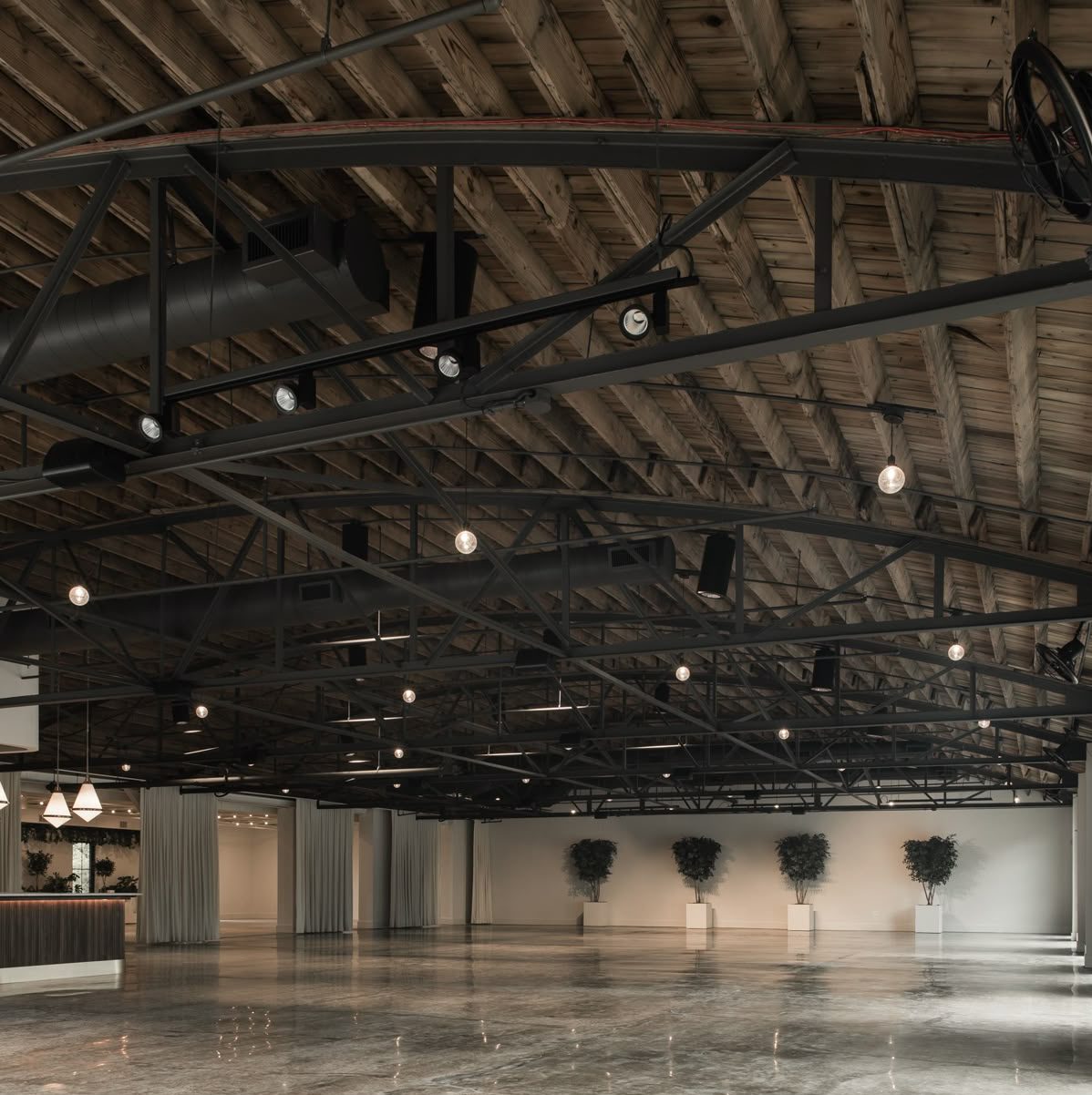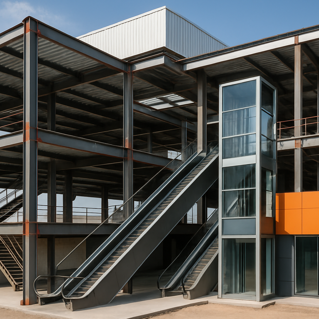 - Struktur Utama: Baja WF/H-Beam bentang lebar, standar SNI/ASTM.